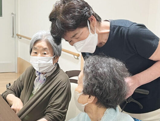 ご入居者さまが安心して穏やかな生活が送れるように、寄り添いながら、身体的にそして精神的に介助をさせていただいております。また、ご家族にもご安心いただけるよう、ご入居者さまの生活の変化や、日常の様子をお伝えする「橋渡し」として、日々取り組んでおります。